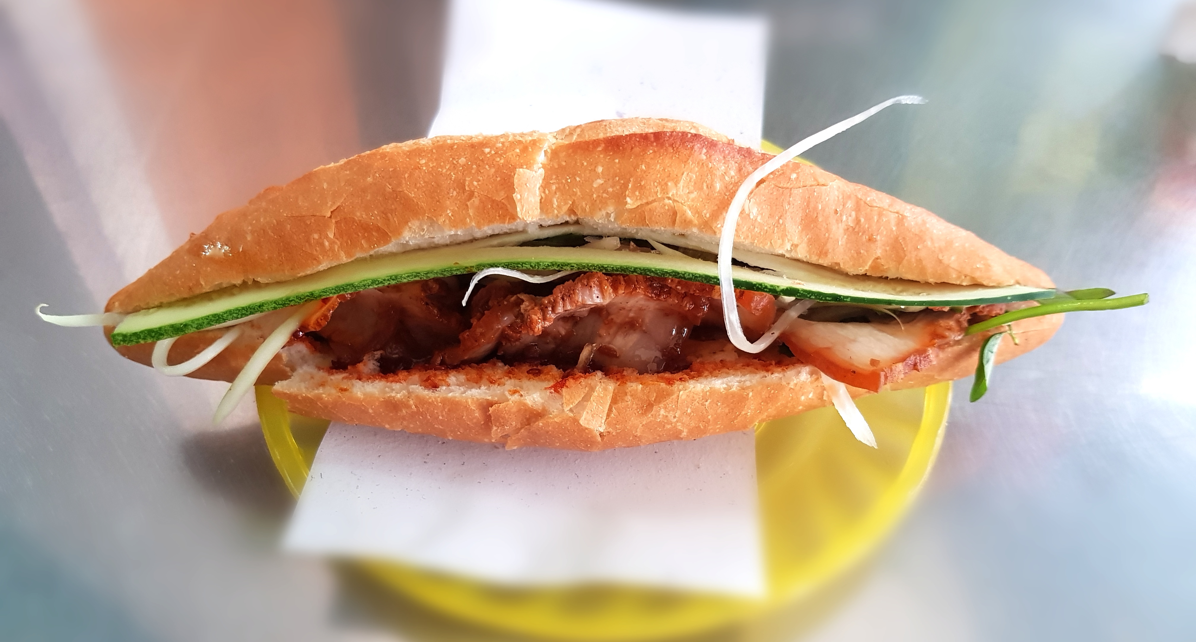 Zurück in der Stadt, besuchte ich den Markt und aß an einem der vielen Ständen ein Banh Mi, ein knuspriges Baguette (von den französischen Kolonialherren eingeführt), traditionell belegt mit Schweinefleisch, Möhren, Rettich, Gurken und einer würzigen Soße.